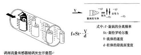 一定雷諾數(shù)范圍內(nèi)(2×104~7×106 ),旋渦的釋放頻率f與流體流速V及旋渦發(fā)生體的迎流面寬度d之間關系式為f=St?v/d,式中St 為斯特勞哈數(shù),它是一個無量綱的系數(shù),只要準確測出頻率f,就可以求得流體流速v,由v求出體積流量。