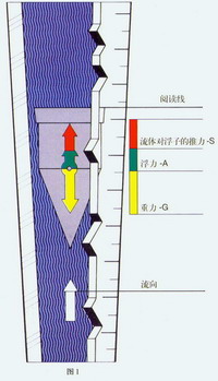 流量計測量原理 金屬轉子流量計是一種變面積式流量計,它通常具有一段直立的錐管和一只可以在其中自由的隨流量大小上下移動的浮子(如圖1)。當流體自下而上流經錐管時,流體的動能在浮子上產生的推力S和流體的浮力A使浮子上升。隨著錐管內壁與浮子之間的環(huán)形流通面積增大,流體動能在浮子上產生的推力S隨之下降。當推力S與浮力之和等于浮子自身重力G時,浮子處于平衡,并穩(wěn)定在某一高度上,該高度位置對應的刻度指示流過流量計的流量。 |