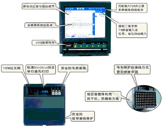 ◆使用USB接口轉存和備份歷史記錄,支技128M、256M、512M優盤;支持FAT16/FAT32文件系統類型,Windows可識別歷史記錄文件。